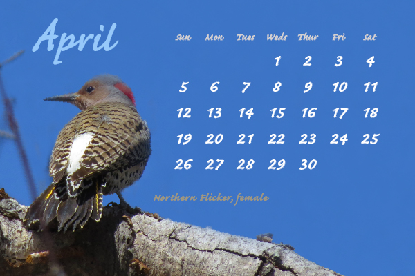 Flickers are one of the few woodpeckers in the Northeast that migrate, arriving early spring. Females lack the black malar stripe, or mustache, of the males. Photographed in the Hampton Falls, NH, saltmarshes. |